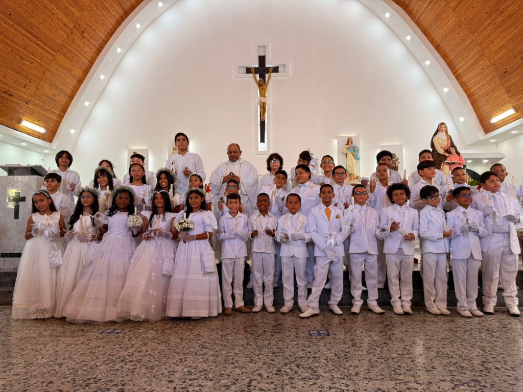 Vestidos de blanco, con rostros iluminados por la expectativa y la inocencia, los pequeños dieron un paso trascendental en su formación católica, reafirmando los valores inculcados tanto en sus hogares como en el colegio. La ceremonia estuvo acompañada de cantos, oraciones y reflexiones que resaltaron la importancia de la fe en la vida de los más jóvenes.